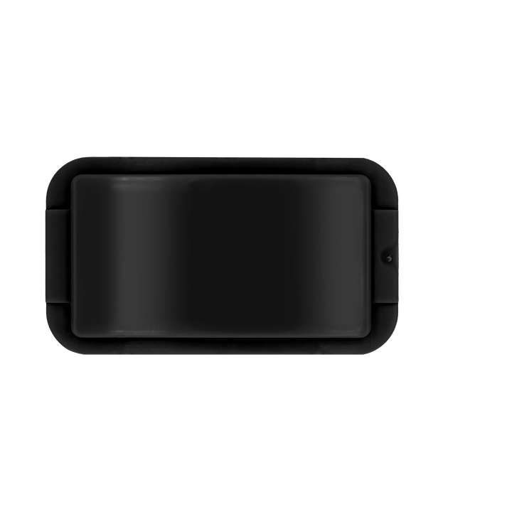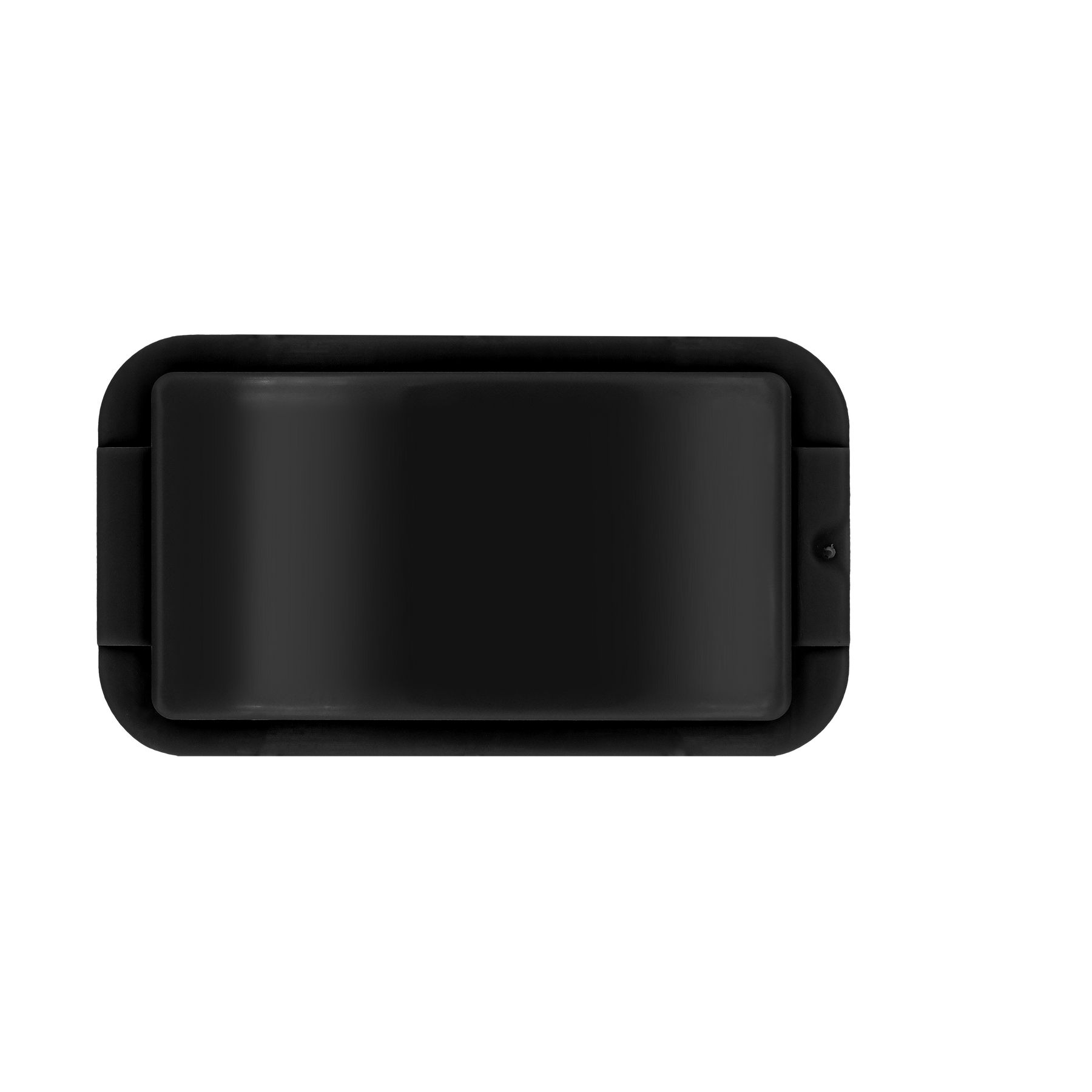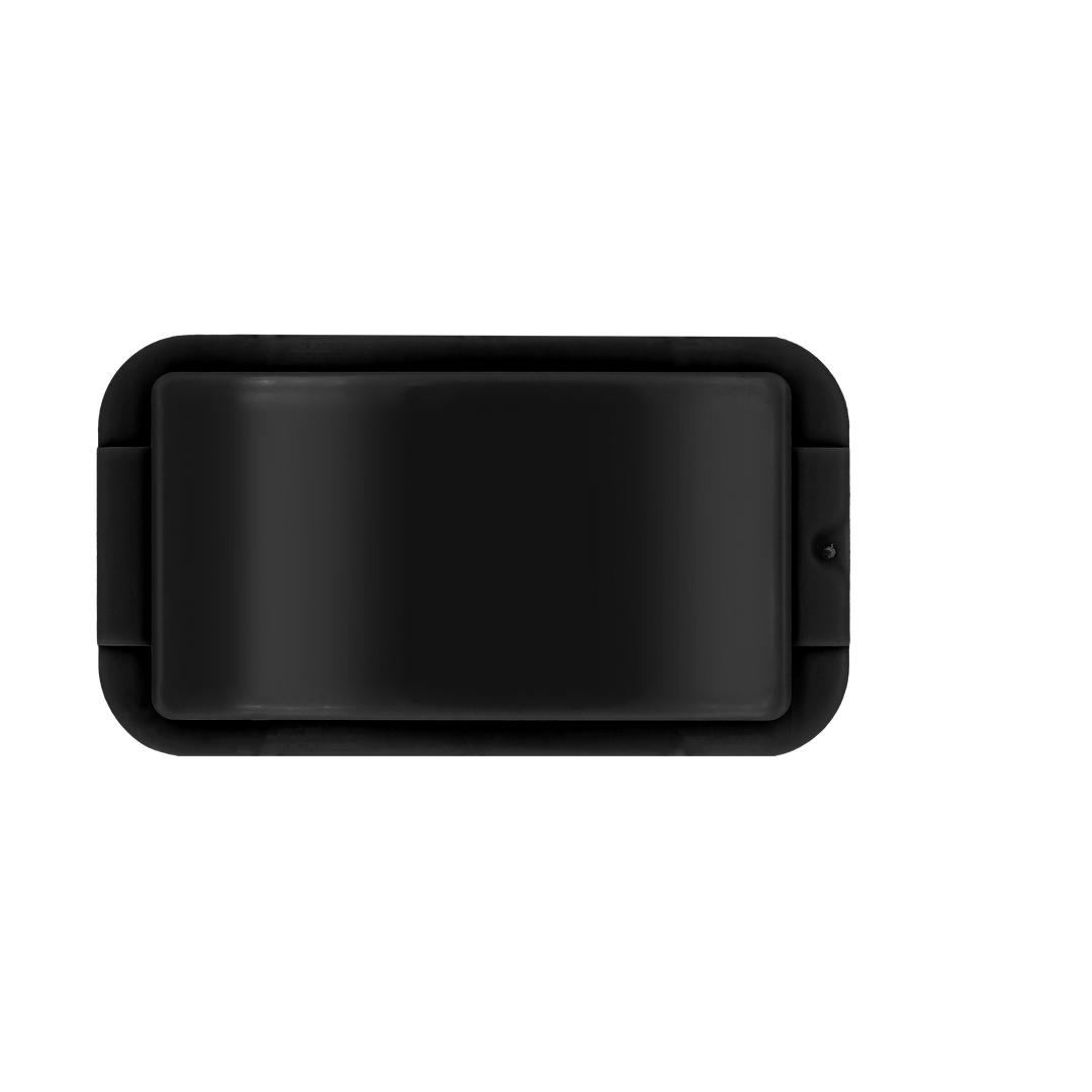 The Black Onyx ZippyDisc™ by ZippyBelts™ is a rectangular black plastic accessory with rounded corners, resembling a matte belt add-on or rocker switch, shown from above on a black background.