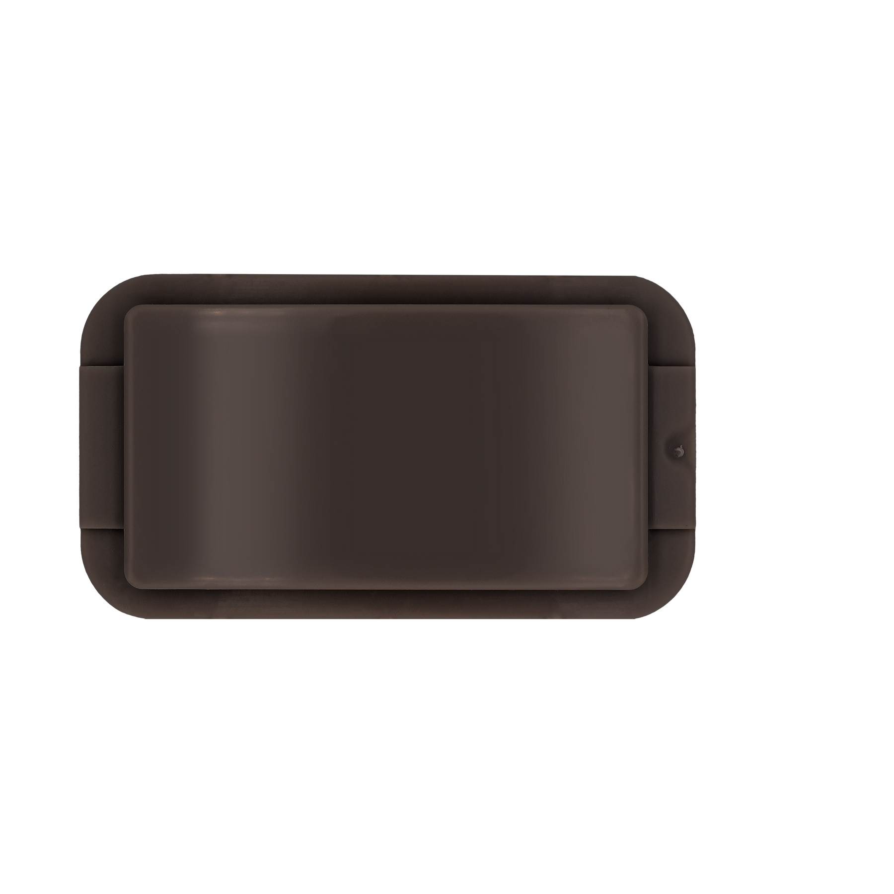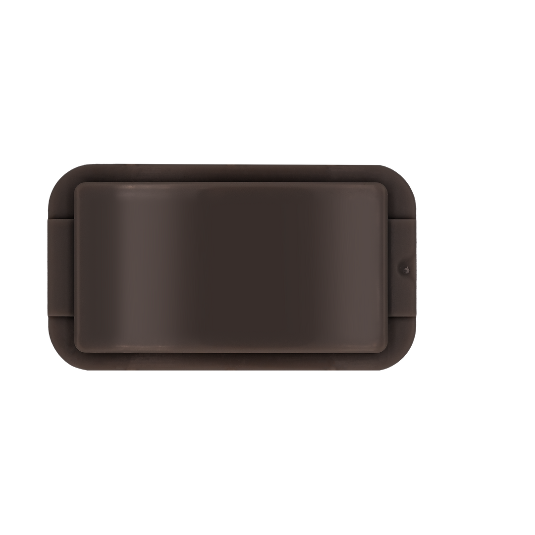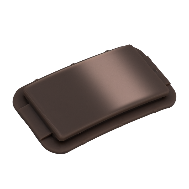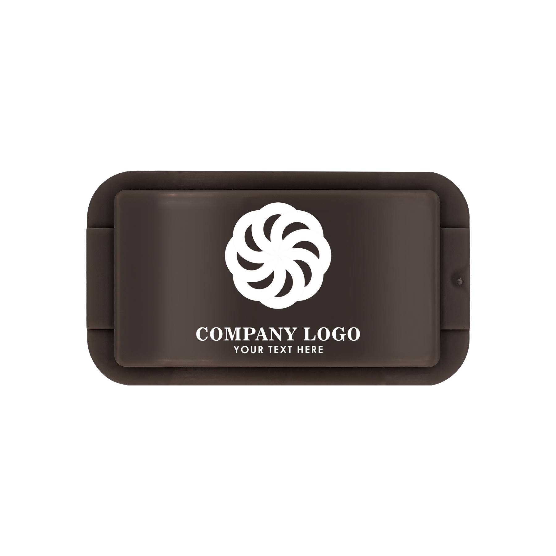 The Brown Onyx ZippyDisc™ by ZippyBelts™️ is a rectangular, dark brown plastic disc with rounded corners and a hinged lid—ideal for customizable event branding.