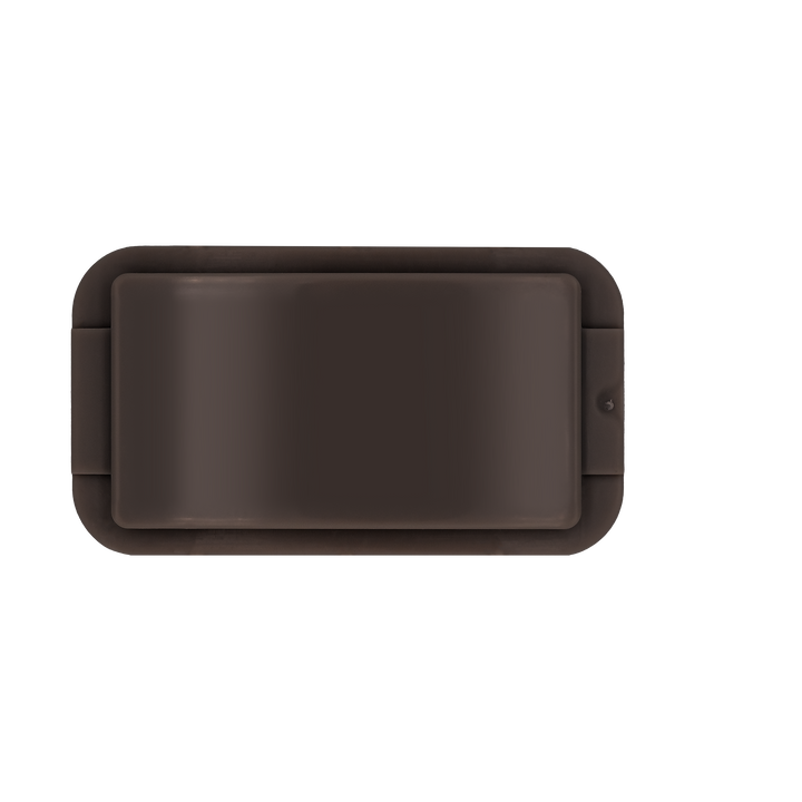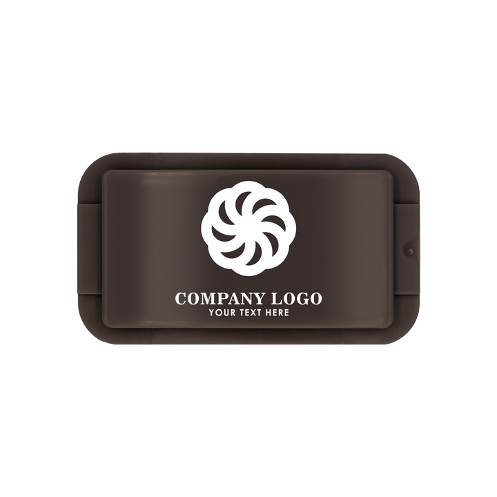 A rectangular brown plastic container with a matching lid from ZippyBelts™️, ideal for custom event branding or as a stylish addition to your Brown Onyx ZippyDisc™ collection.