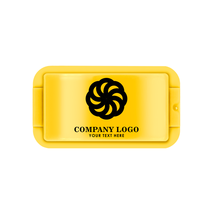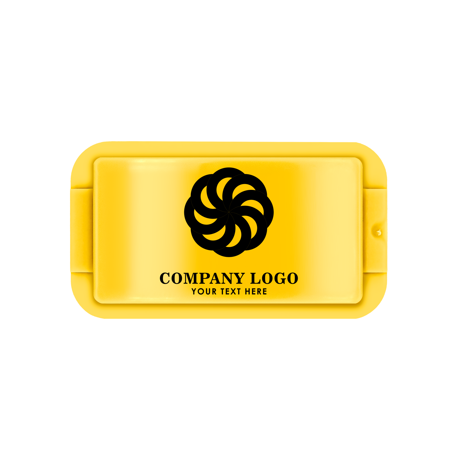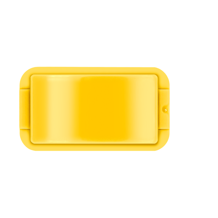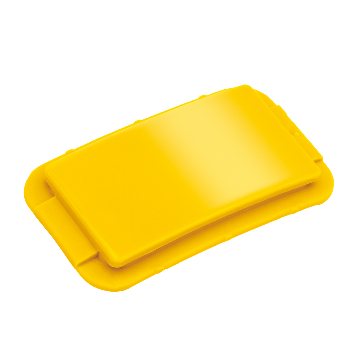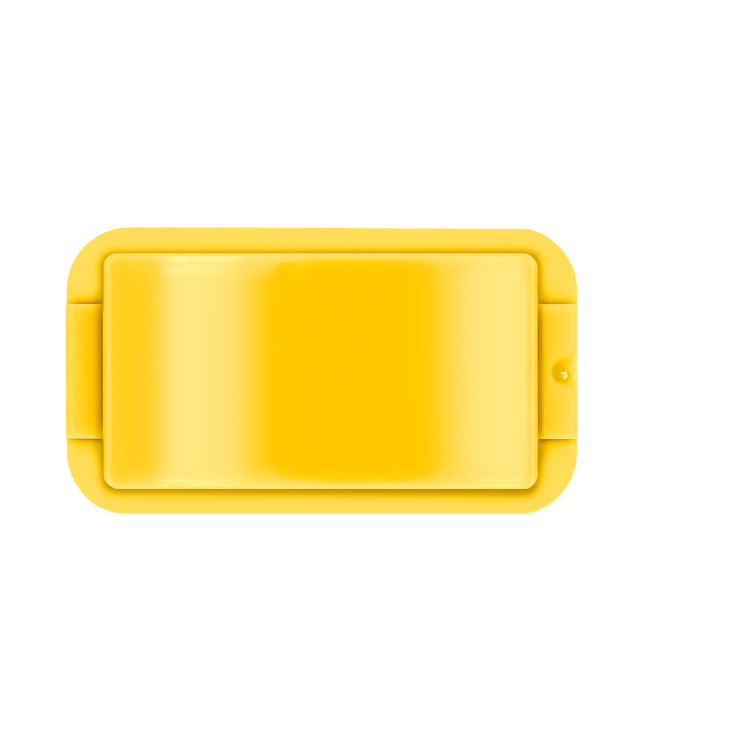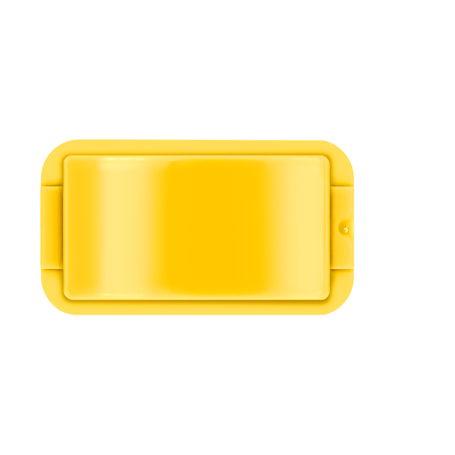A rectangular, bright yellow plastic lid with rounded corners, seen at an angle against a plain background—evoking premium team accessories like the ZippyBelts™️ Yellow Onyx ZippyDisc™ for vibrant disc golf fans.